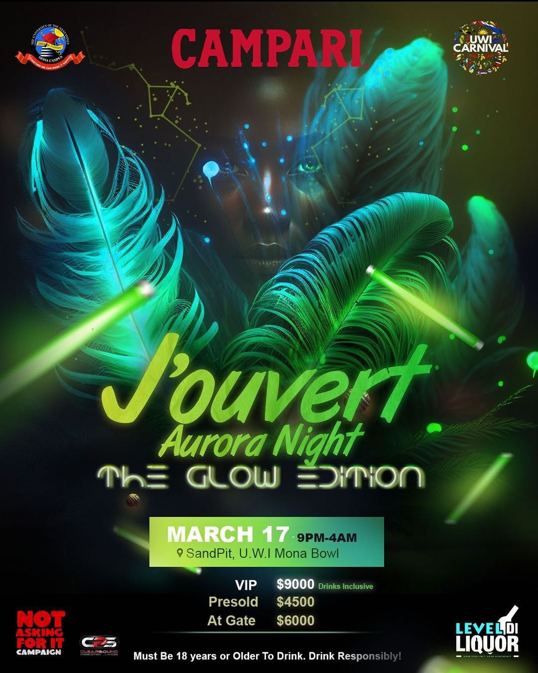Unleash your vibes & energy at Jouvert, Aurora Night! 💚 POWDER, PAINT, FOAM, WATER, VIBES, FETE! 💚🚦 . THE GLOW EDITION 🚦💚🚦 . MARCH 17 from 9PM - 4AM . 📍Sandpit, UWI MONA BOWL 💚 _________________________________________ Haven’t secured your tickets yet? Don’t worry we got you! . Tickets are available at the Students’ Union and