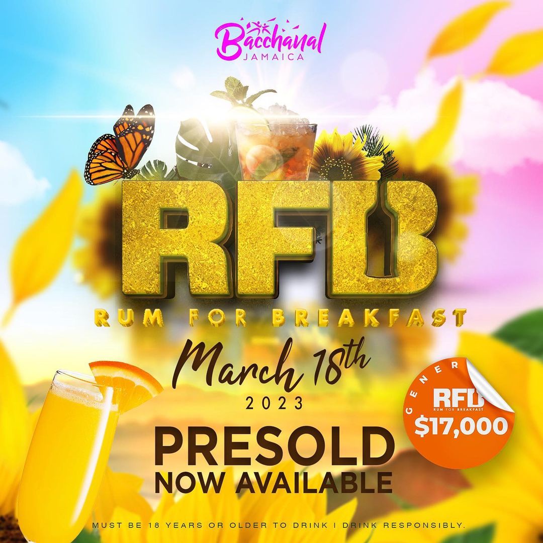 Rum for Breakfast (RFB) returns March 18th✅ Time: 7am -12pm ⏱️ @ Hope Zoo 📍 . Tickets now on sale with our ambassadors 🎟️🎟️🎟️🎟️🎟️ Mark Lalor- @marklalor Melissa Liu- @carnivalbelle Danielle Holung- @dantajho Keisha Kong- @milfykk Wayanne Stewart- @wayz1 Peter Harrison- @phongfellow Viv Lue Tenn- @viviluetenn 8763932316 Leighton Facey- @avalanche876 Available at Mas Camp Ammars(village