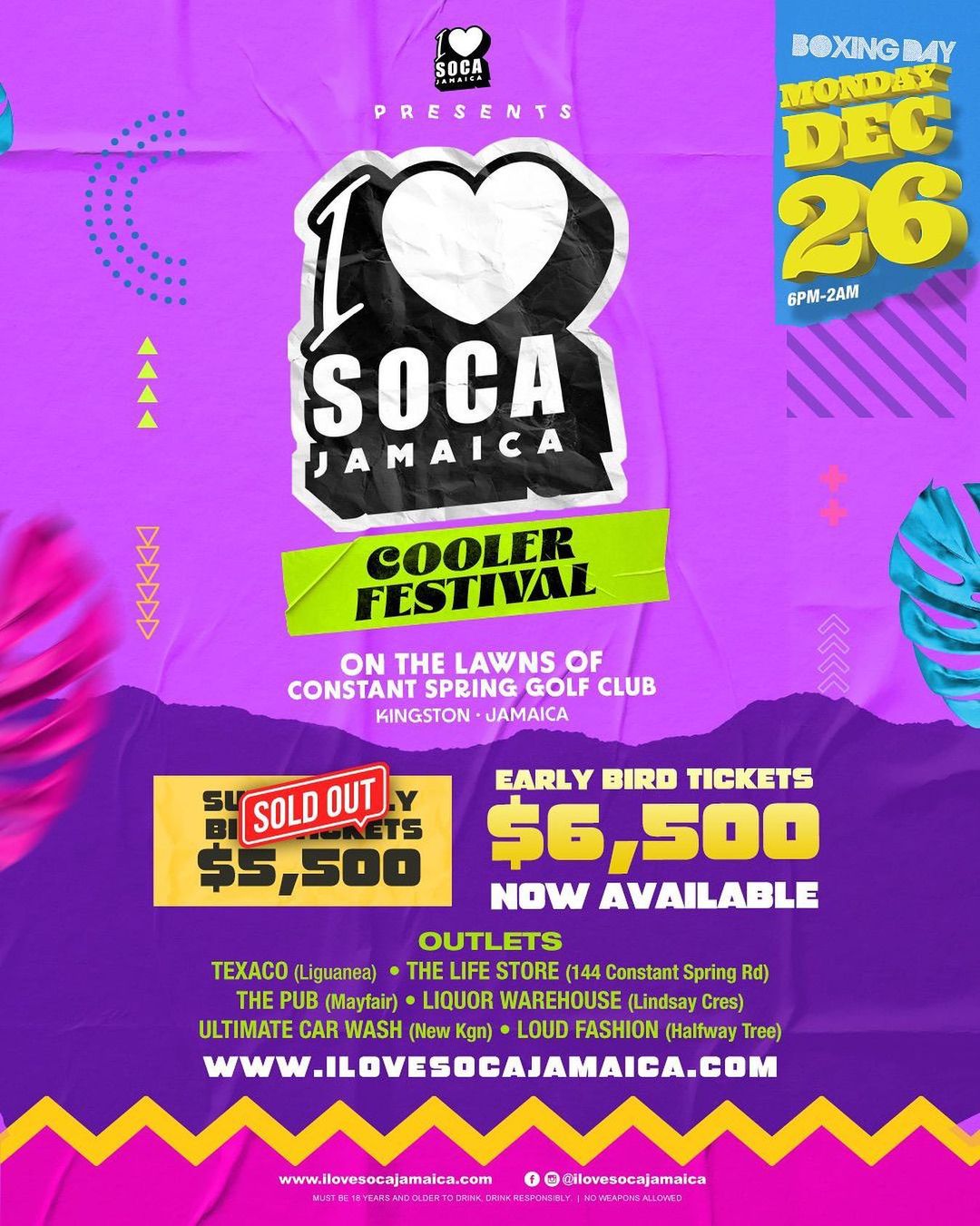 Meet us on the LAWNS of the CONSTANT SPRING GOLF CLUB for I Love Soca Boxing Day 2022 🙌🏾 SUPER online-only EARLY BIRDS GO ON SALE 12pm Wednesday NOV 2,